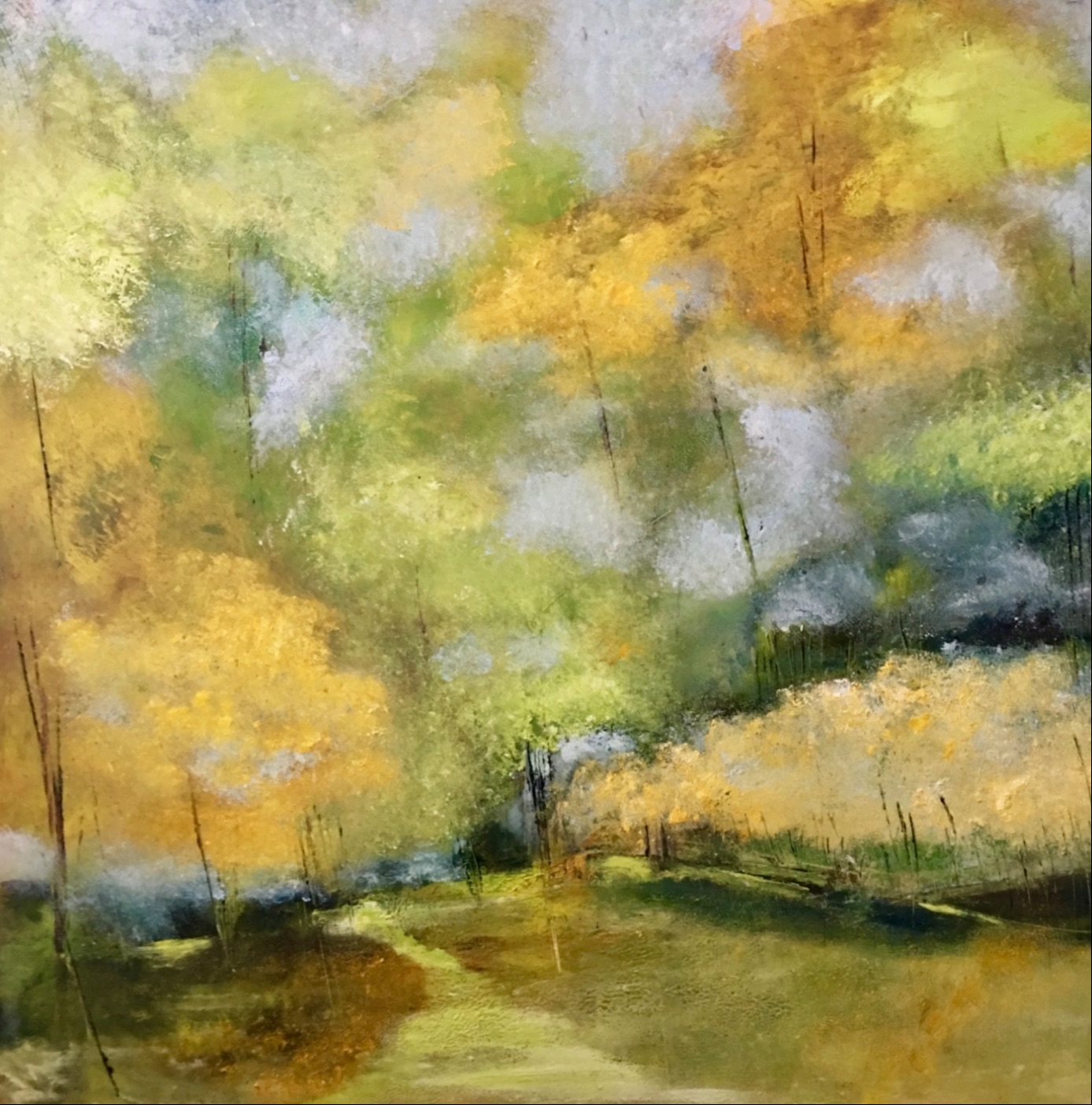 “My class with Lisa has just been amazing! In addition to meeting with us each week on Zoom calls she has been a constant support on Facebook and/or email whether it was for critique or help in re-working our paintings or really any assistance at all. She is always encouraging, supportive and such a lovely, calming and fun presence! She has taught us so many skills in oil and cold wax, acrylics, color composition, techniques, methods for creating interest, etc. that I know I will continue to refer to these lessons quite often. Not only will you NOT be disappointed in a class you take with her, you will find her instruction and inspiration as a basis for all the continued artwork you will create! I am including a few of the pictures I have done in the class so far. In two of them I have used Lisa's suggestions in her videos she creates for our own work.
